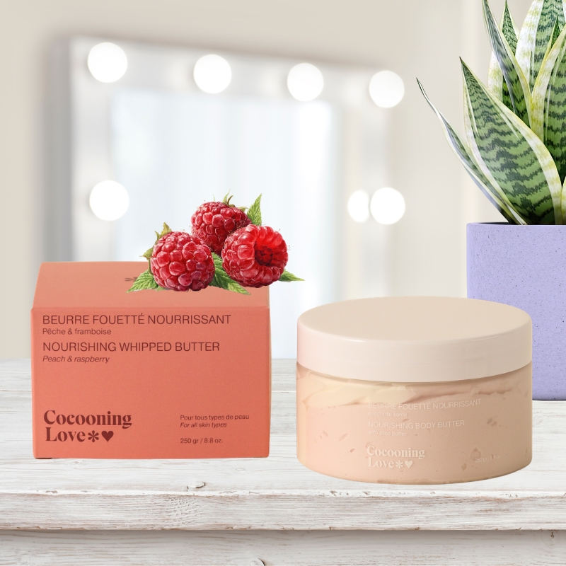 Plongez dans une expérience sensorielle unique avec le Beurre Fouetté Cocooning Love. Sa texture aérienne et crémeuse fond instantanément sur la peau, procurant une hydratation intense et un confort immédiat. Idéal pour les peaux sèches et sensibles, ce soin 100 % naturel et végan nourrit en profondeur sans effet gras.